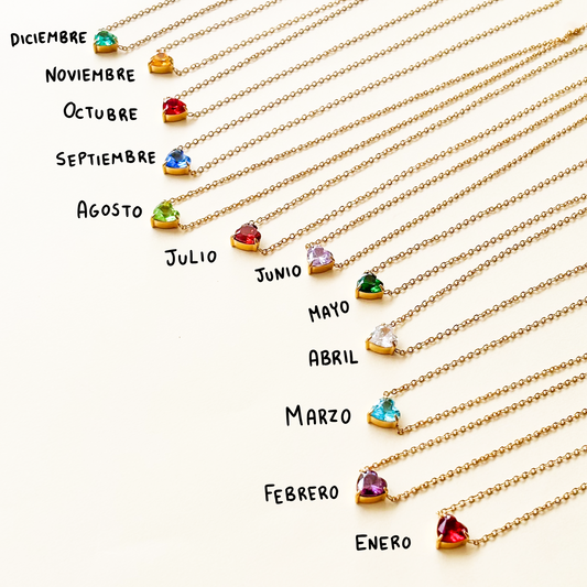 Collar Mes de Corazón de Zirconia Acero Inoxidable