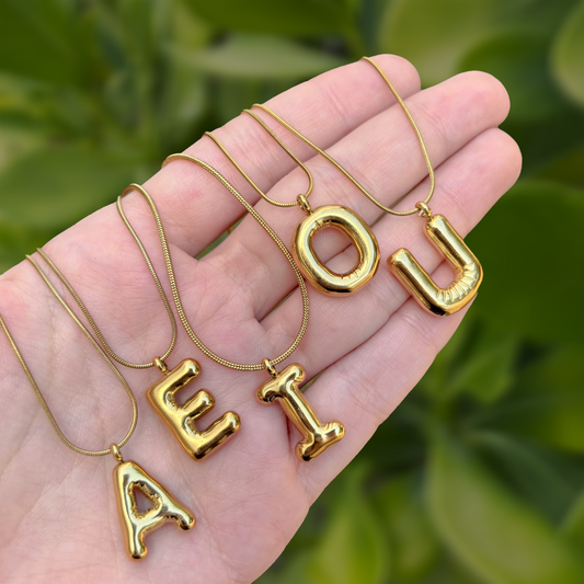 Collar Perlas Blancas y Letra A Dorada 1I5