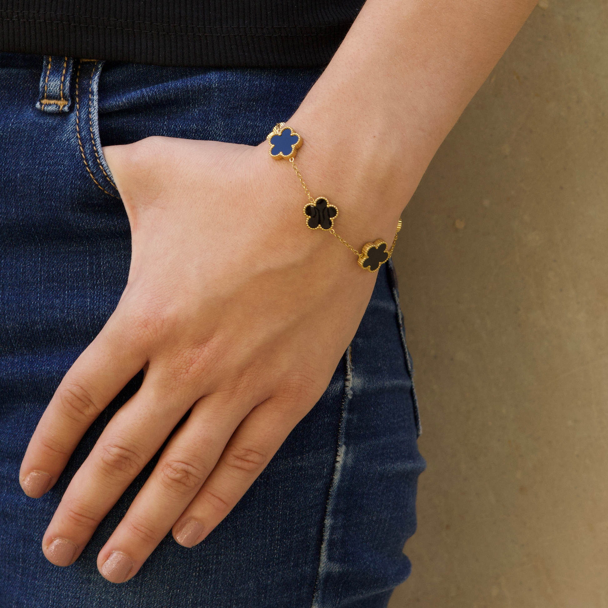Pulsera Dorada Trébol Negra Acero Inoxidable 1T4