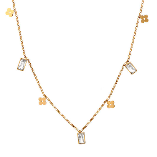 Collar Dorado Trébol y Zirconia Acero Inoxidable 1Y5