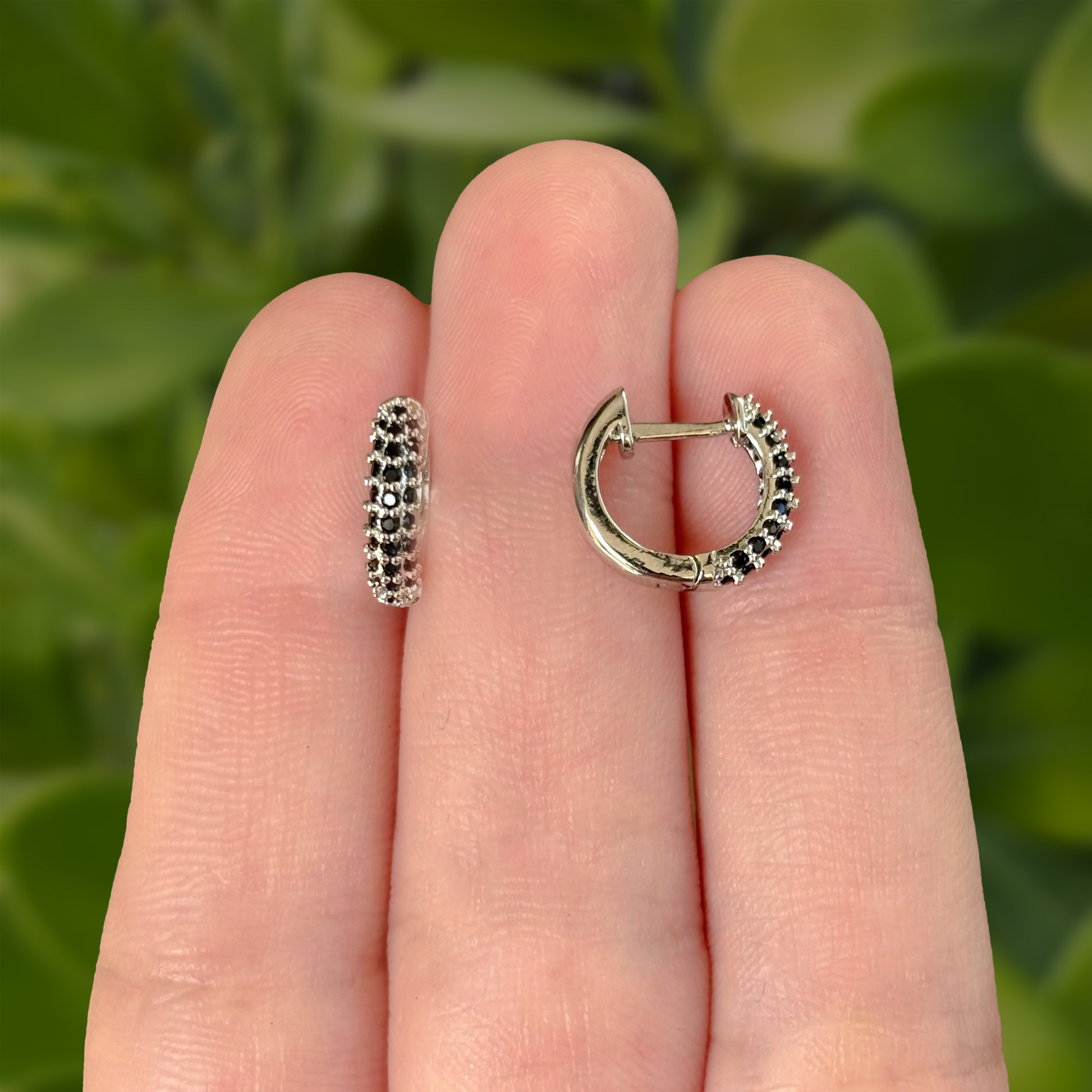 Aretes Arracada Plateada Con Zirconias Negras Chapa de Oro R783